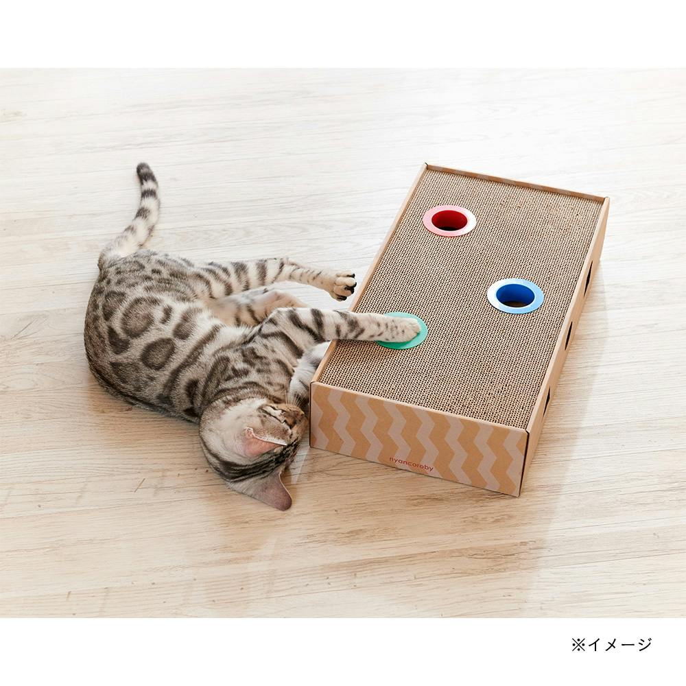 猫専用のおもちゃ付き爪とぎです。その他の目的には使用しないでください。火や暖房器具のそばに放置しないでください。お子様の手の届かない、またペットのふれないところに保管して下さい。遊び方には個体差があります。ボールは取り出せます。
