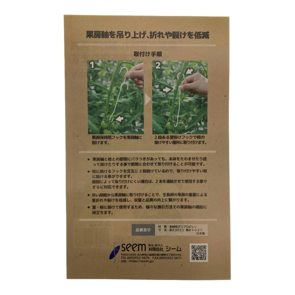 ●果房軸と枝との節間にバラ付きがあっても、本体をたわませたり捻じって掛けたりする事で節間に合わせて取り付ける事が可能です。●枝に掛けるフックを交互に2段設けているので、取り付けやすい枝に掛けることが出来ます。等