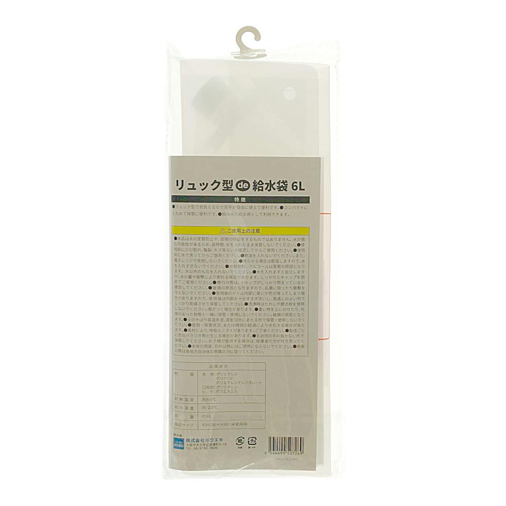 リュック型 de 給水袋 容量 約6L