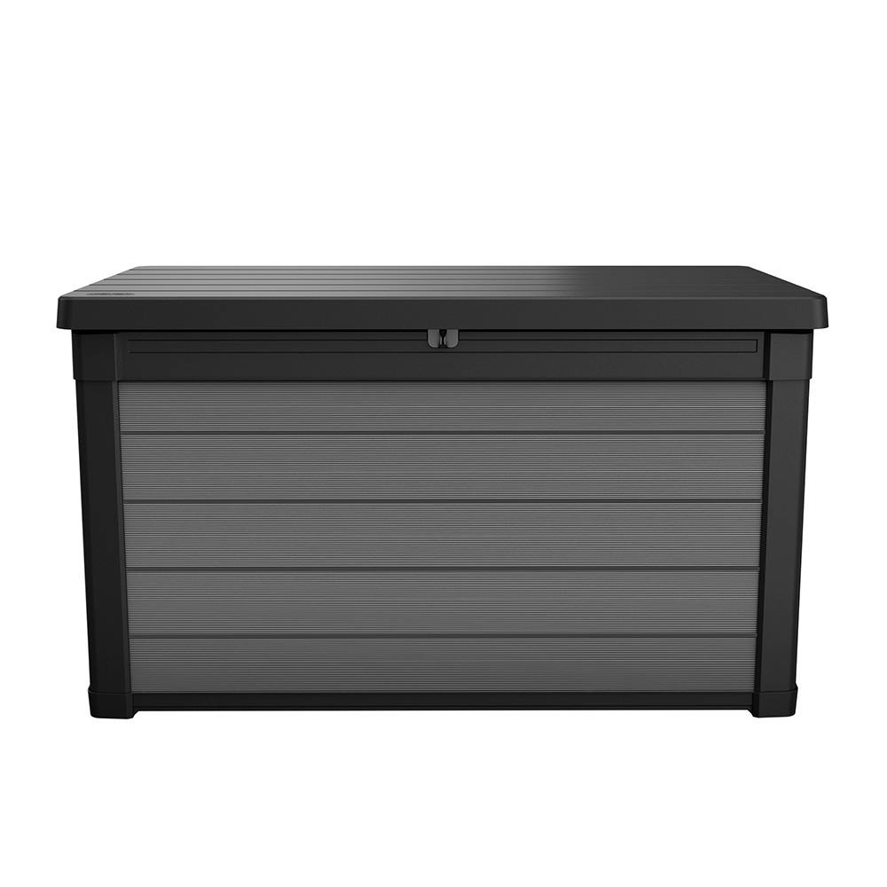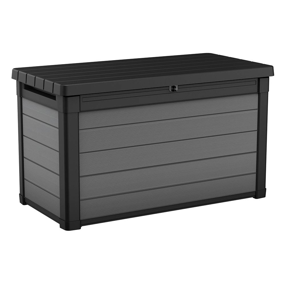 隠すから魅せる収納庫へ。お庭や玄関横に置いてもおしゃれな木目調の収納庫です。大人2人がベンチとして腰を掛けても安心の蓋の耐荷重は300㎏。