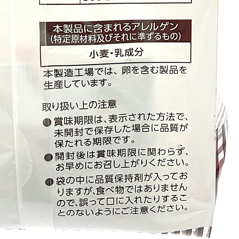 ●本製品に含まれるアレルゲン(特定原材料及びそれに準ずるもの)/小麦・乳製品 ●本製造工場では、卵を含む製品を生産しています