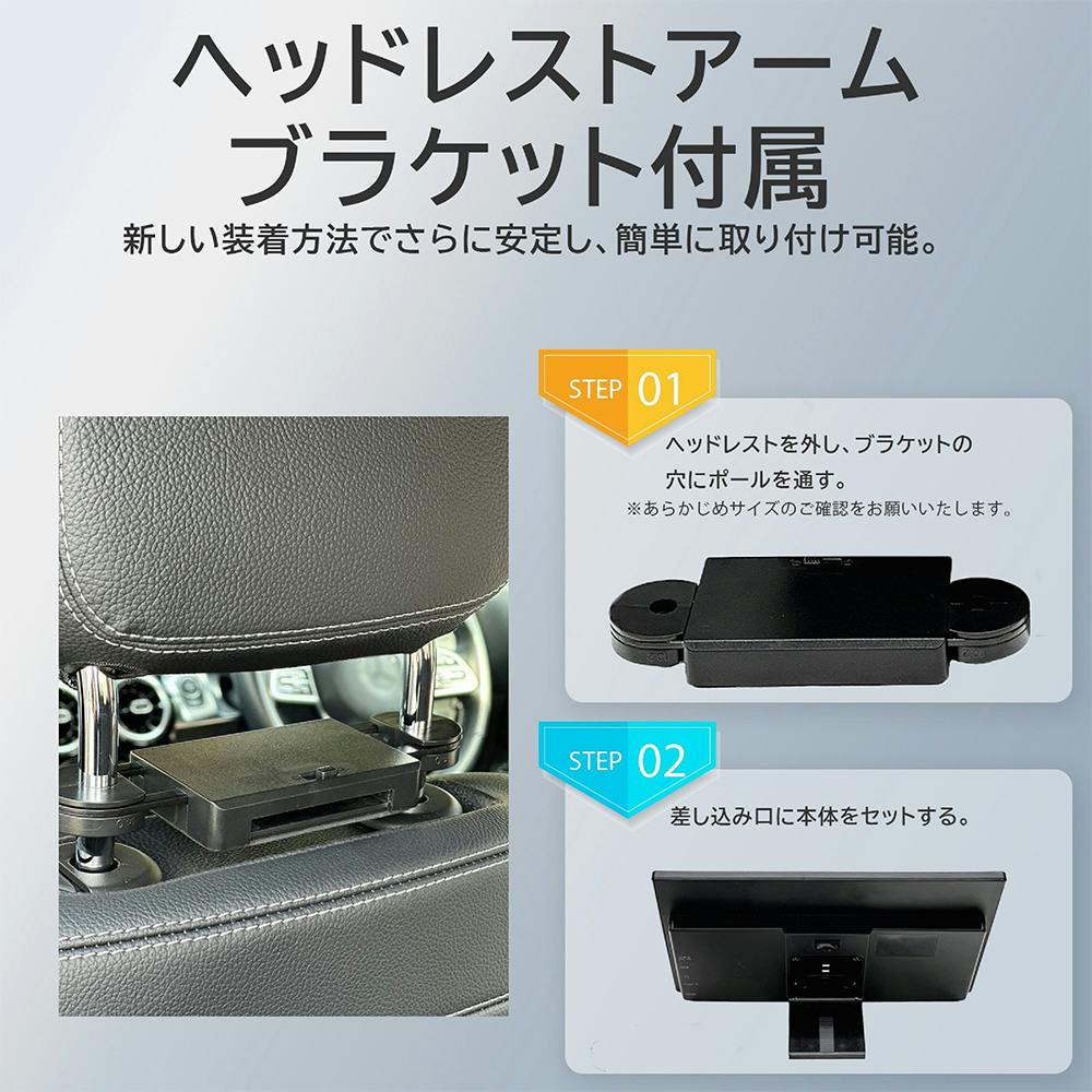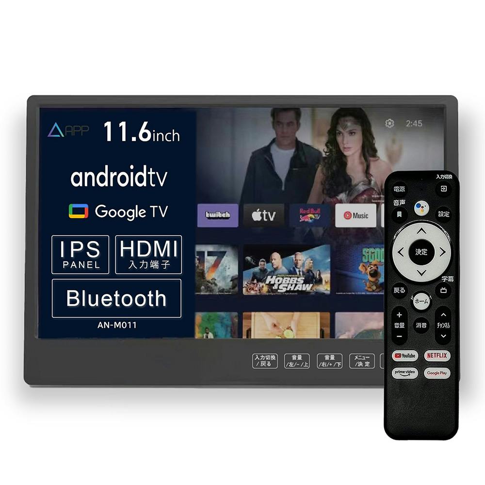 ●11.6インチIPS液晶で広視野角で見易い ●アームブラケット付きでヘッドレストに固定し高さ調整も可能 ●AndroidTV搭載し音声操作ができるリモコン付き
