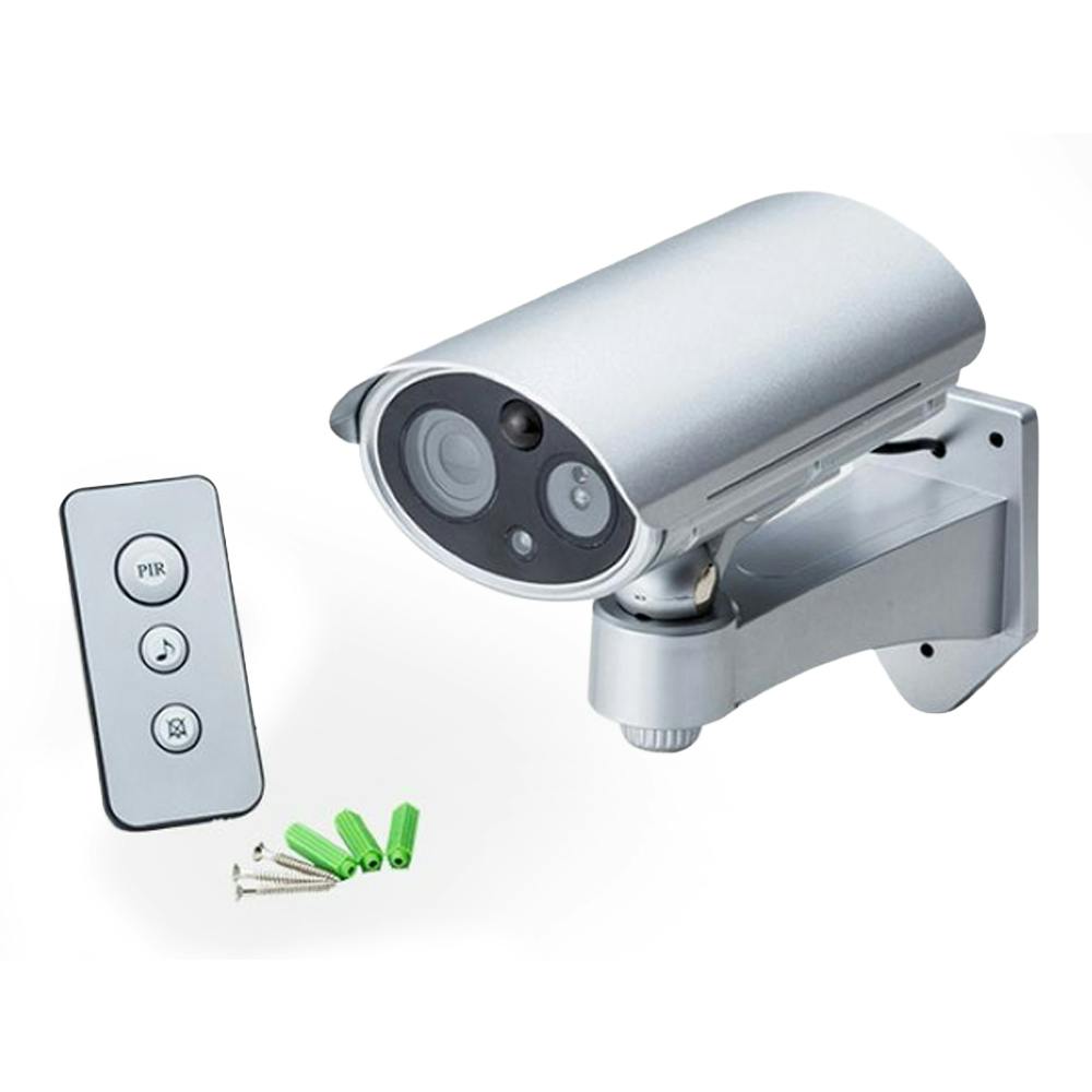 音・首振り・LED点滅で威嚇効果バツグンのダミーカメラです。スピーカーからの音量約80dB(デジベル)。センサー反応でLED点滅。夜間もカメラの存在がわかります。音の種類は、リモコンで操作。近所迷惑対策にも消音機能もあります。(ボリューム音量調整不可)