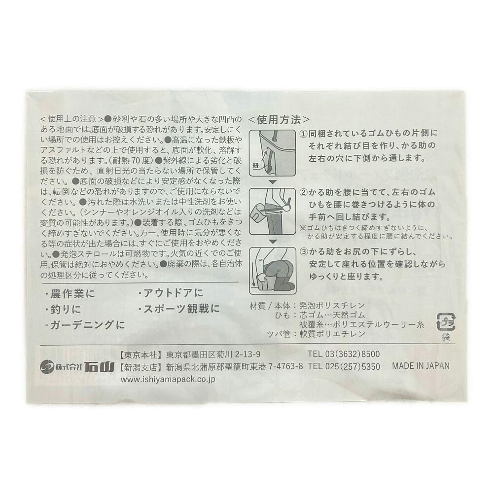 付属のひもを腰に巻くことでしゃがむ度に簡単に座ることが可能です。軽量で持ち運びも楽々、緩衝性も高い素材です。農作業や釣り等におすすめです。