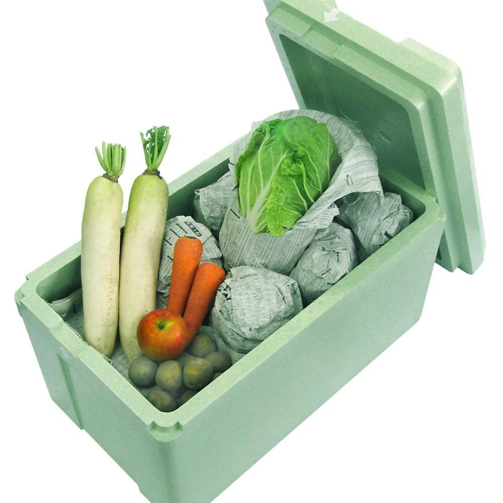 夏はクーラーボックスとして、冬は野菜の鮮度保持容器として使用可能。蓋を矢印に合わせて閉めると通気孔が開き、ガスが外に排出されることで野菜の成熟や腐敗の抑制効果があります。