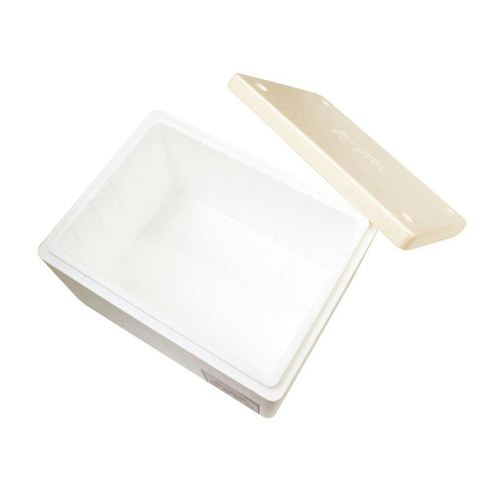 従来品よりも高密度・肉厚設計で保冷性能が約20%UPした発泡容器です。生活シーンにマッチしたナチュラルな2トーンカラーと丸みのあるデザインで、冷気を循環させる格子状の溝がついています。