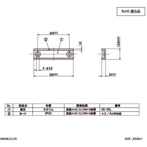 【CAINZ-DASH】マグナ ネオジ磁石プレートキャッチ(角形・キャップ付)(1個入) 1-NCC50L【別送品】