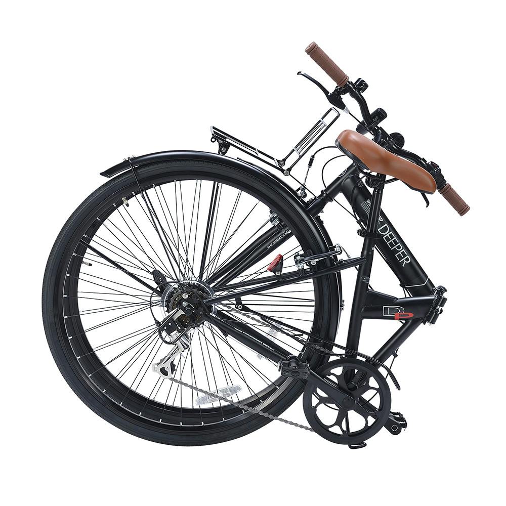 ●長距離走行にも最適な27インチタイヤ●フロントキャリア付でカゴを取り付け可能●シマノ6段変速&制動力のあるVブレーキ仕様●前後フェンダー付きで汚れを防止●衣類等の巻き込みを防ぐチェーンガード装備●車載や収納にも便利な折畳機能付