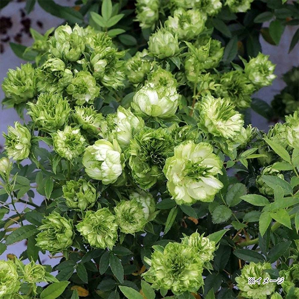白地に黄緑色がのった花で咲き始め、開花と共に全体に黄緑色がのり最後は緑色になる。元々は切り花品種で、花もちが非常によく雨にも強い。