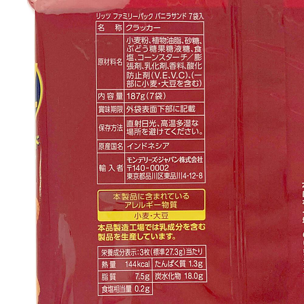 ●日本を含め世界のロングセラークラッカー●香ばしい風味、サクサクの食感のクラッカーと、バニラ風味の絶妙なコンビネーション●小腹満たしや持ち歩きに便利な3枚パック●リッツクラッカーとバニラ風味の甘じょっぱい美味しさを、様々なシーンで楽しめます