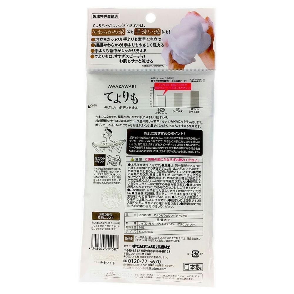超超極細66ナイロン繊維と立体ウェーブ織りを採用、手洗いよりもやさしい肌ざわりを実現した、今までにないボディタオルです。