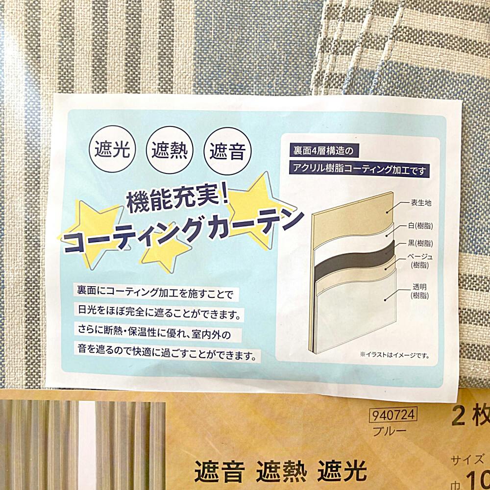 機能充実!コーティングカーテン/●裏面にコーティング加工を施すことで日光をほぼ完全に遮ることができます。●さらに断熱・保温性に優れ、 室内外の音を遮るので快適に過ごすことができます。
