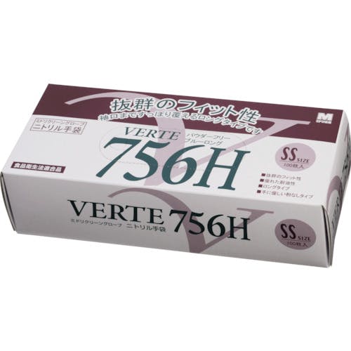 【CAINZ-DASH】ミドリ安全 ニトリル使い捨て手袋 ロング 粉なし 青 SS (100枚入) VERTE-756H-SS【別送品】