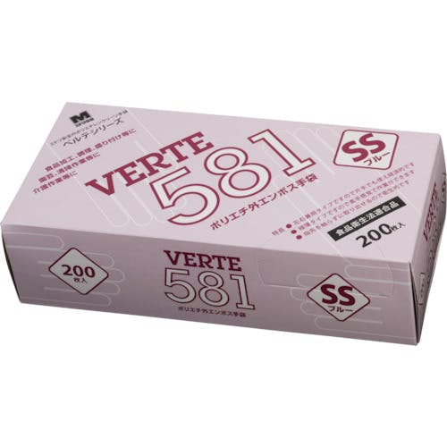 【CAINZ-DASH】ミドリ安全 ポリエチレン使い捨て手袋 外エンボス 青 SS (200枚入) VERTE-581-SS【別送品】
