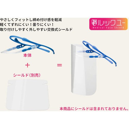 【CAINZ-DASH】ミドリ安全 メディカルフェイスシールド ルックユー 本体 ブルー VMS-551-B【別送品】