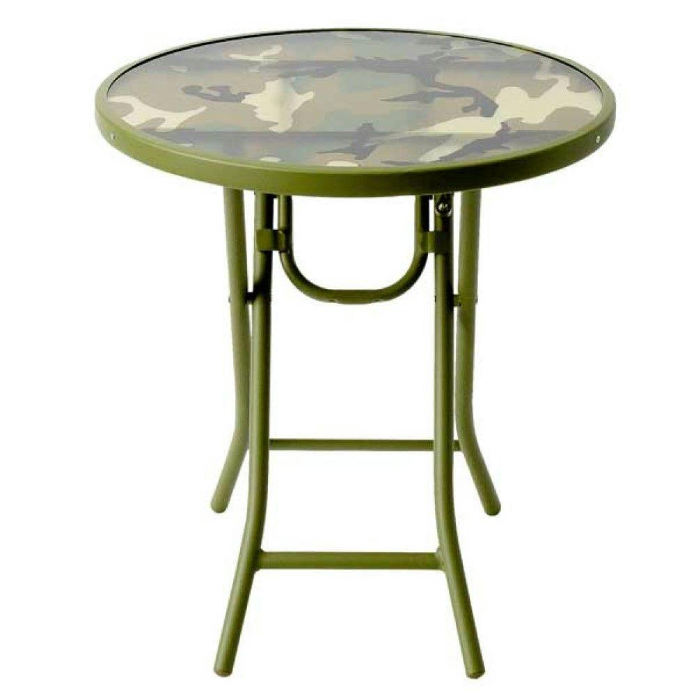 テラスだけでなく室内や、キャンプなどのアウトドアにも持って行きたくなる迷彩柄。女性の部屋にも合いそうな上品なデザインで、インテリアのアクセントになりそう。強化ガラス天板の丸テーブルは、テラスはもちろん、室内でも使いやすいデザインです。
