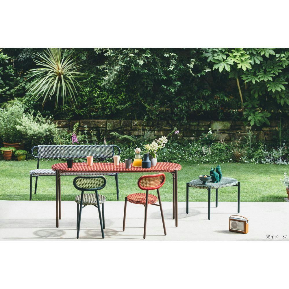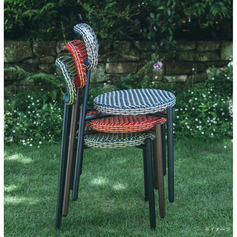 人工ラタンの編み目が大きいため、屋外だけでなくインテリアに使っても軽やかな存在感です。ワークスペースから大人数でのガーデンパーティまで、組み合わせ次第で様々なシーンを構築できるPATIO PETITEの新シリーズです。3脚までスタッキングが可能です。