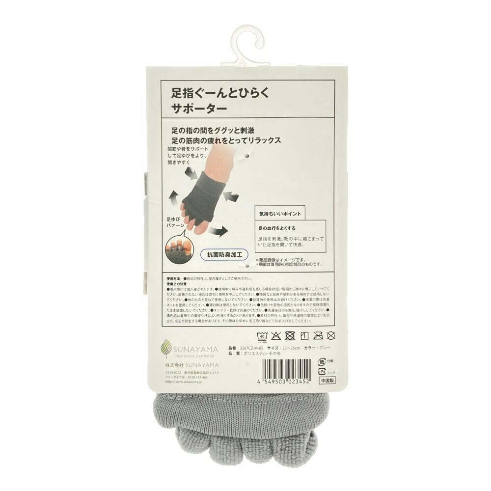 足指ぐーんとひらく サポーター グレー 23.0cm-25.0cm