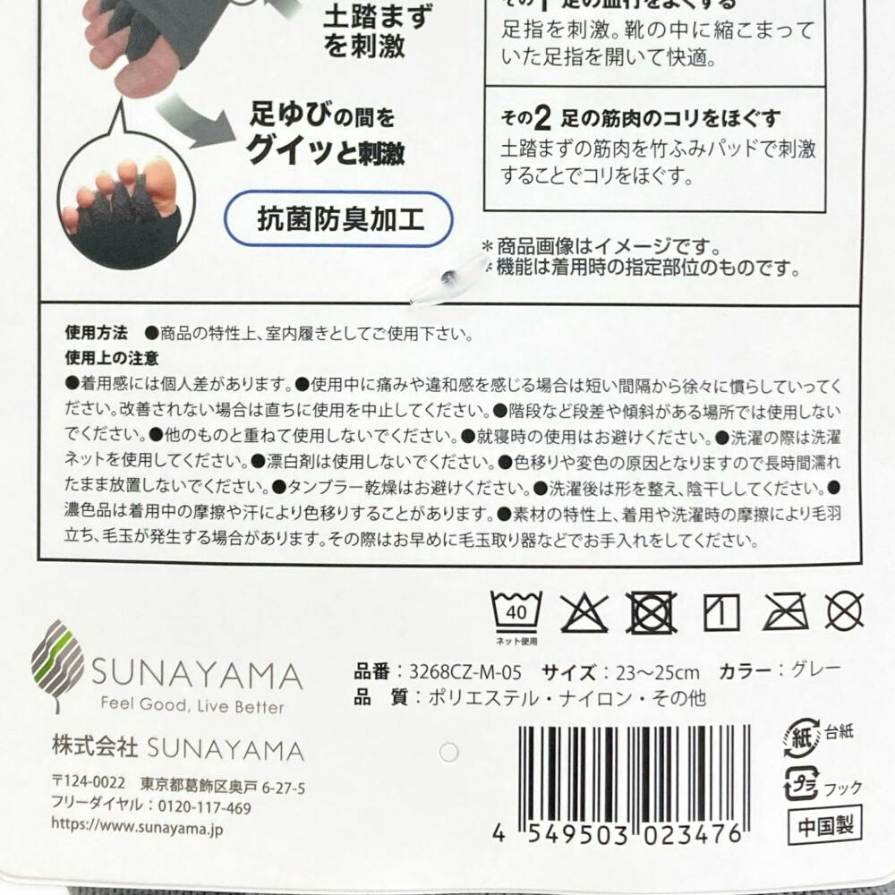 足指・足裏リフレッシュ ソックス グレー 23.0cm-25.0cm