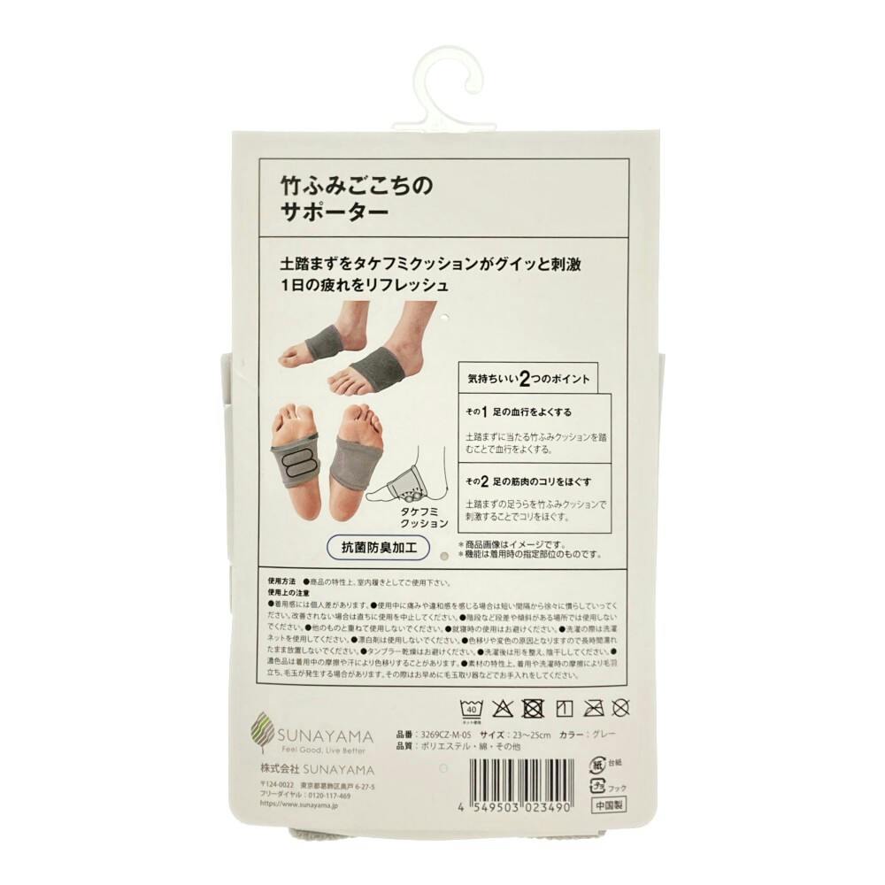 • 竹ふみごこちの サポーター グレー 23.0cm-25.0cm