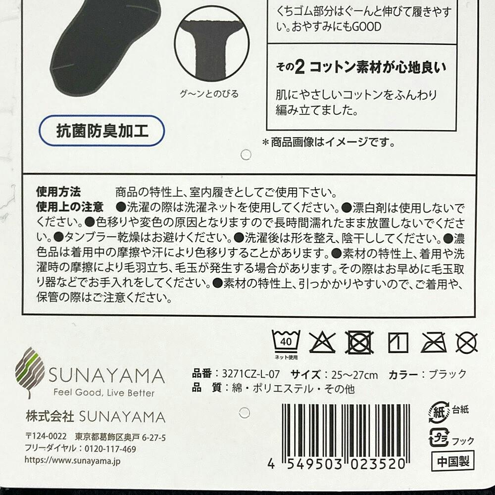 くちゴムゆったり 肌にやさしいルームソックス ブラック 25.0cm-27.0cm