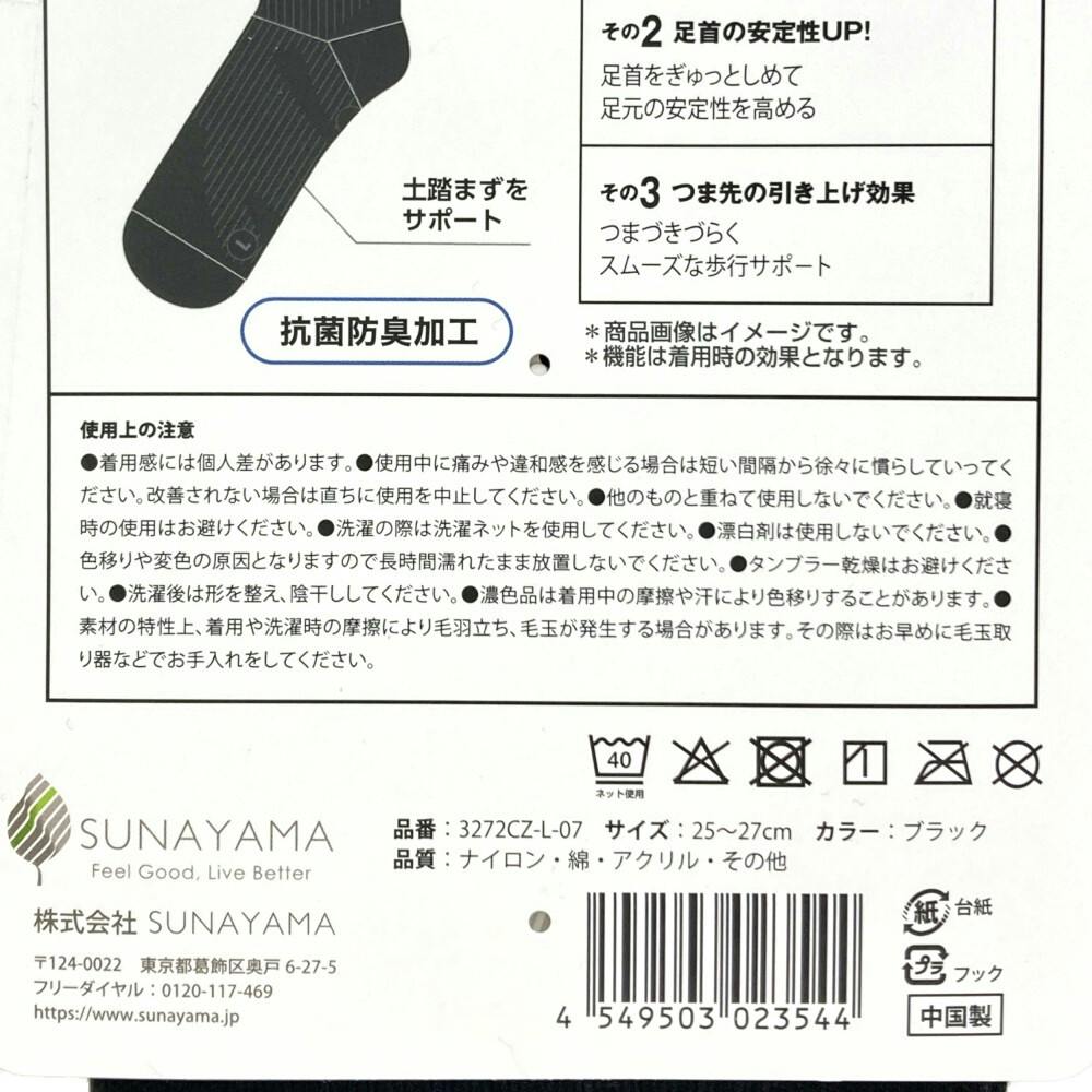 足裏アーチ サポーターソックス ブラック 25.0cm-27.0cm
