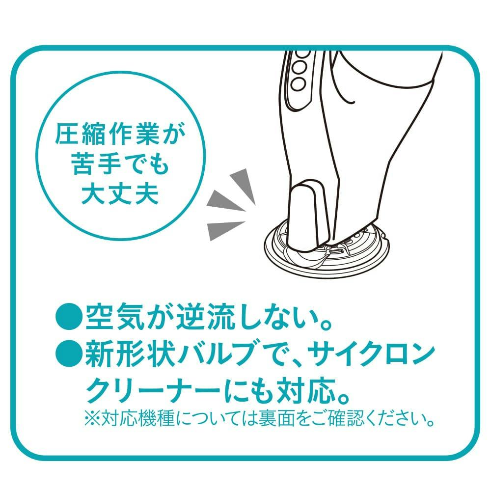 ●クローゼットケースへの収納に使いやすいサイズ。 ●空気が逆流しないオートロックバルブ。 ●チャック部の色で密閉確認。便利なスライダー付き。 ●圧縮作業が苦手でも大丈夫。 ●空気が逆流しない。 ●2枚入り