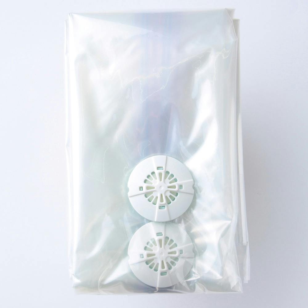 ●フィルム/ポリエチレン、ナイロン ●チャック/ポリエチレン ●バルブ/ポリエチレン、ポリプロピレン ●弁/エラストマー ●スライダー/ポリプロピレン