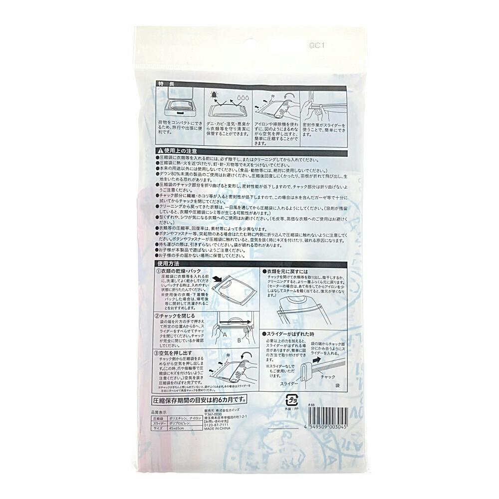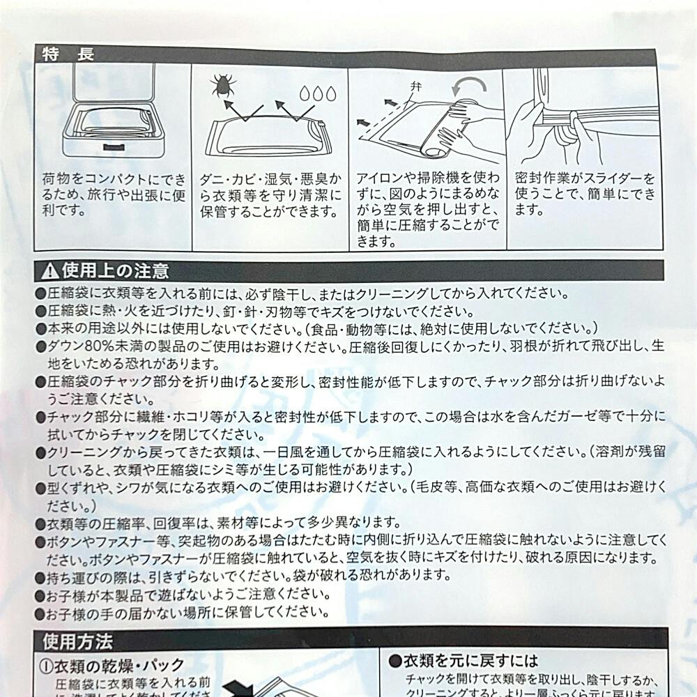 ●大きなセーター等に。●手で圧縮するタイプ。●カンタン固定スライダー付き。●荷物をコンパクトにできるため、旅行や出張に便利です。●ダニ・カビ・湿気・悪臭から衣類等を守り清潔に保管することができます。●2枚入り