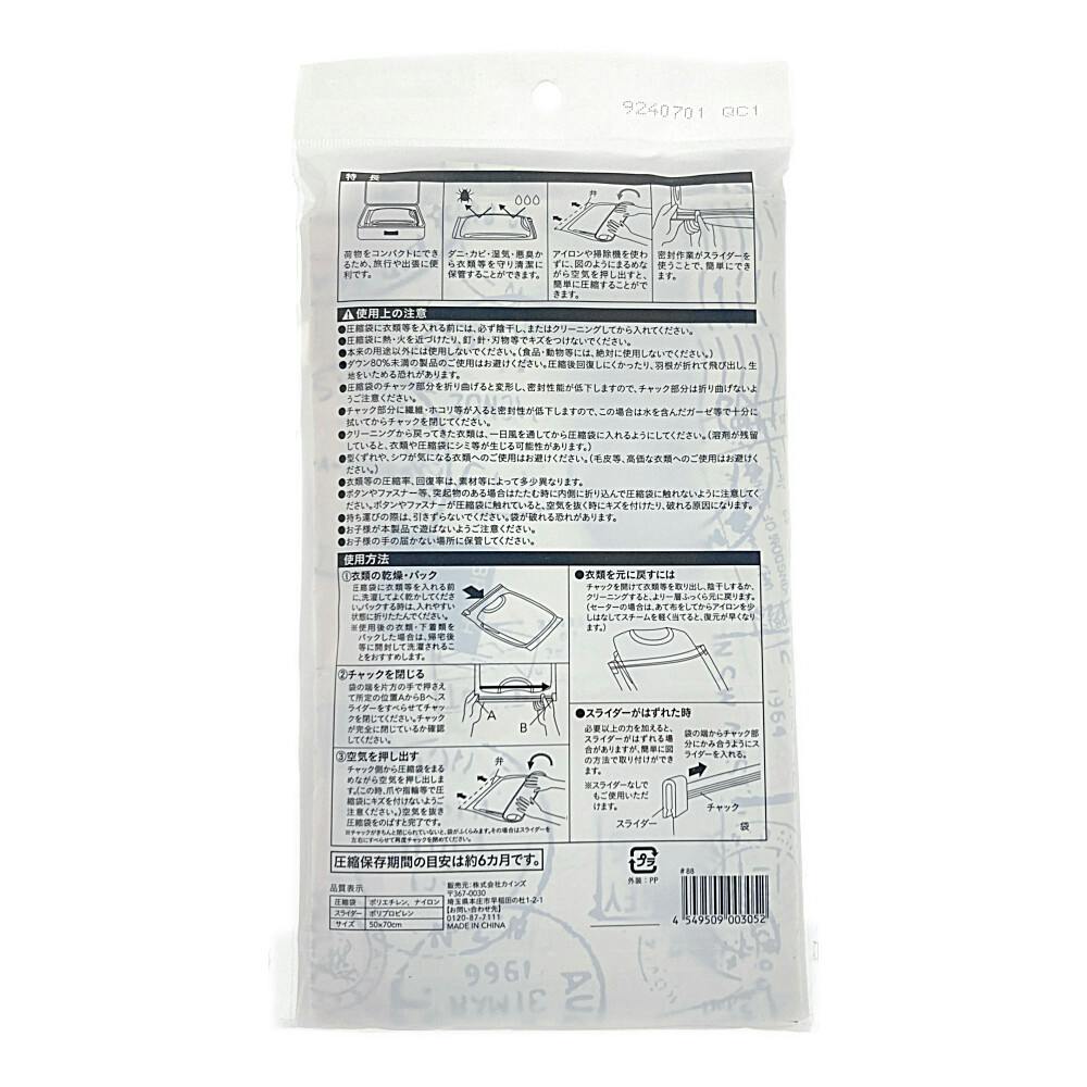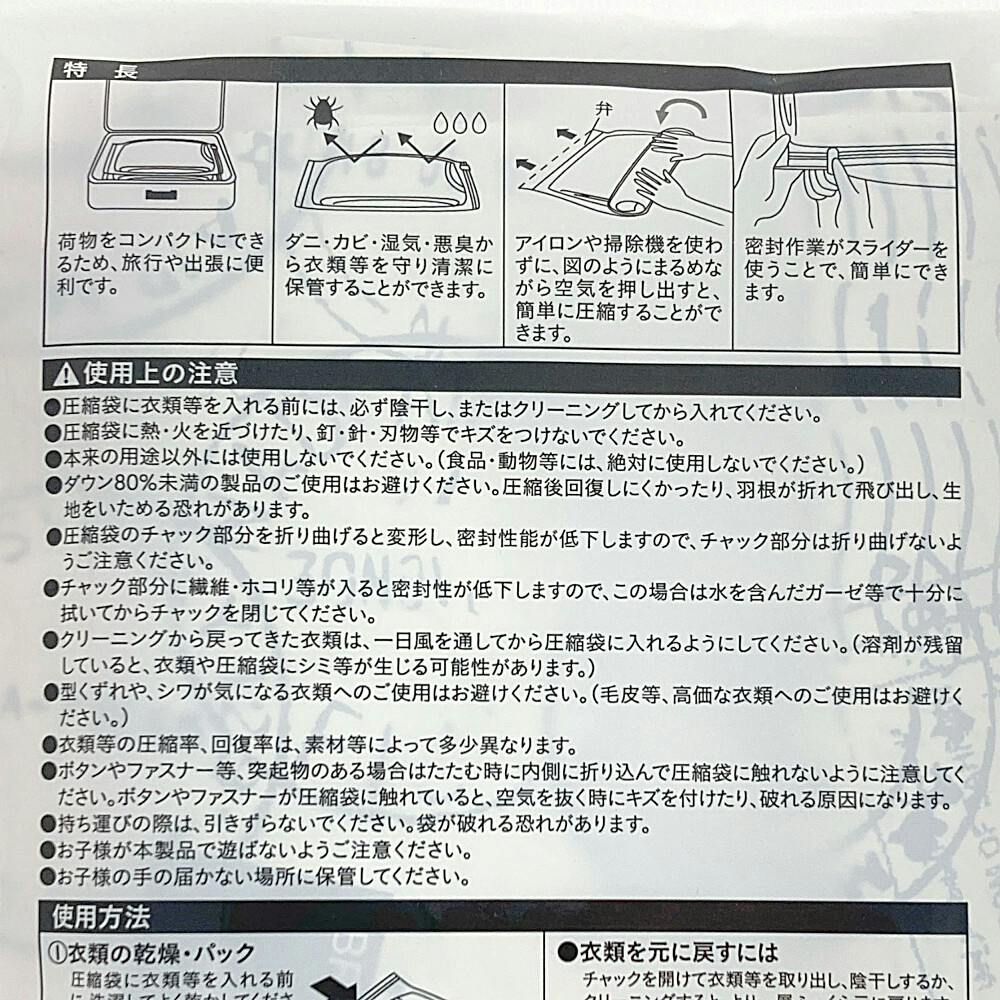 ●ジャンパー・ダウンジャケット等に。●手で圧縮するタイプ。●カンタン固定スライダー付き。●荷物をコンパクトにできるため、旅行や出張に便利です。●ダニ・カビ・湿気・悪臭から衣類等を守り清潔に保管することができます。●2枚入り