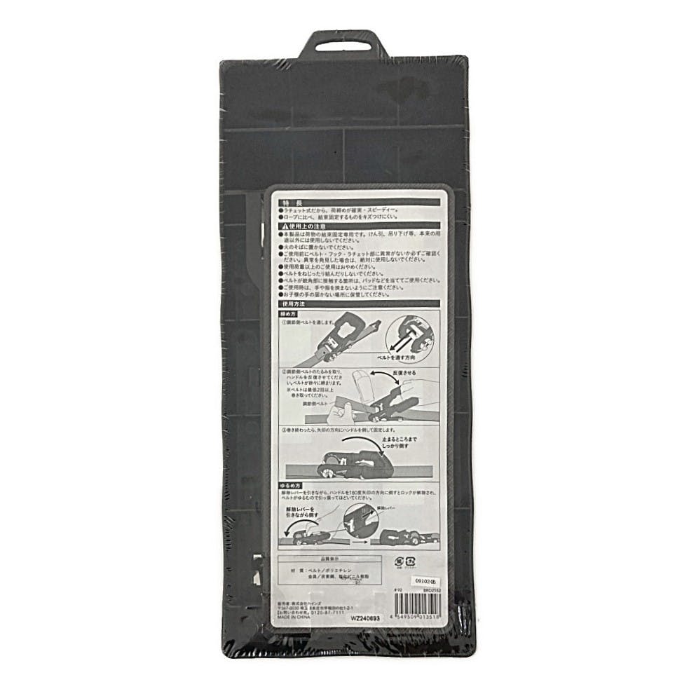 ●ラチェット式だから、荷締めが確実、スピーディー。●ロープに比べ、結束固定するものをキズつけにくい。