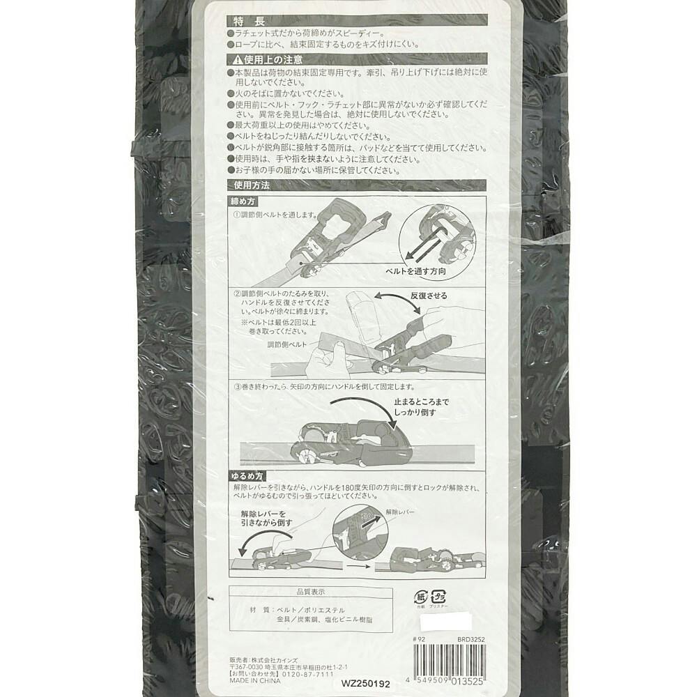 ●ラチェット式だから、荷締めが確実、スピーディー。●ロープに比べ、結束固定するものをキズつけにくい。