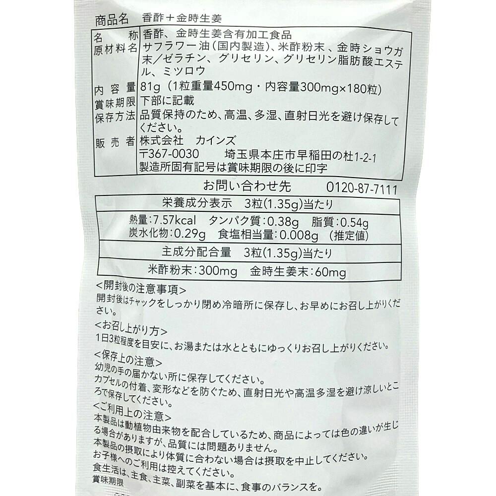 サフラワー油、米酢(禄豊香酢)、金時ショウガ末、ゼラチン、グリセリン、グリセリン脂肪酸エステル、ミツロウ