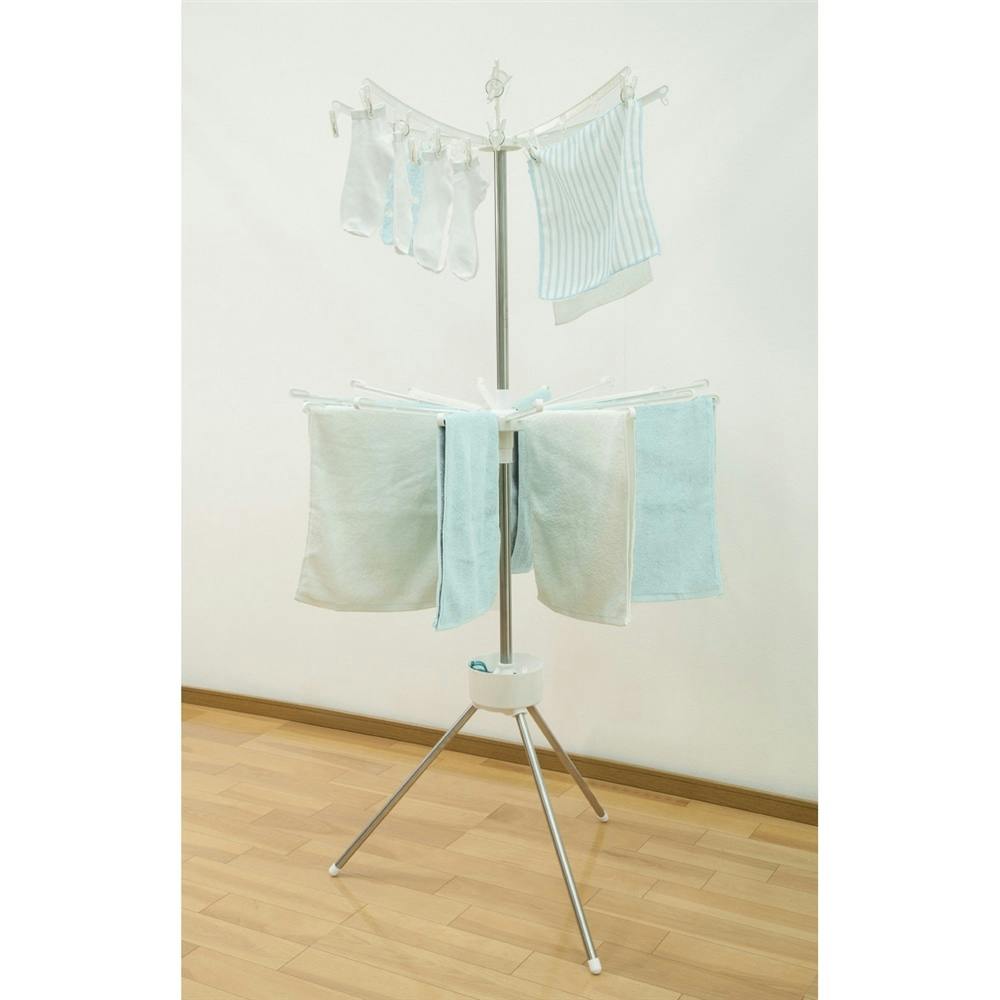 ●たためるので、収納に便利。収納時:厚さ約17cm●小物入れ付き。洗濯ピンチ入れなどに。●タオルハンガー使用でフェイスタオル約16枚干せる。●ピンチハンガー使用でハンドタオル約8枚干せる。●工具不要