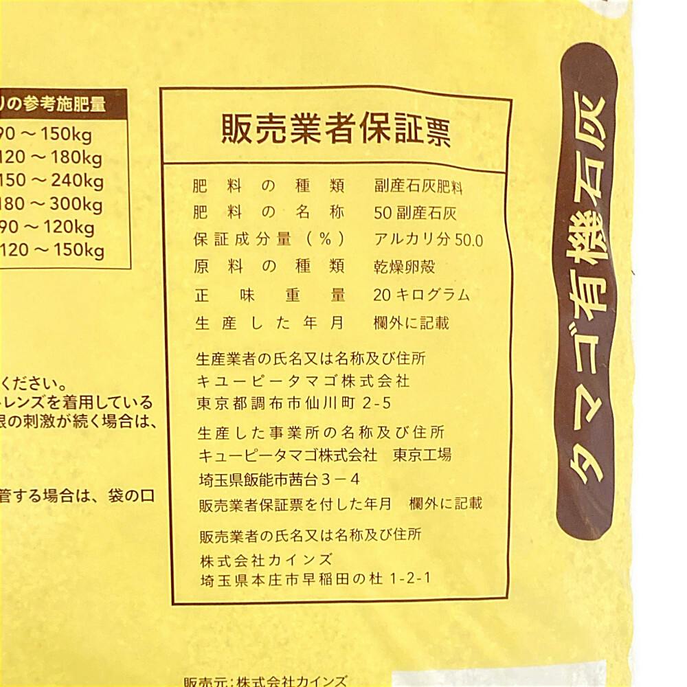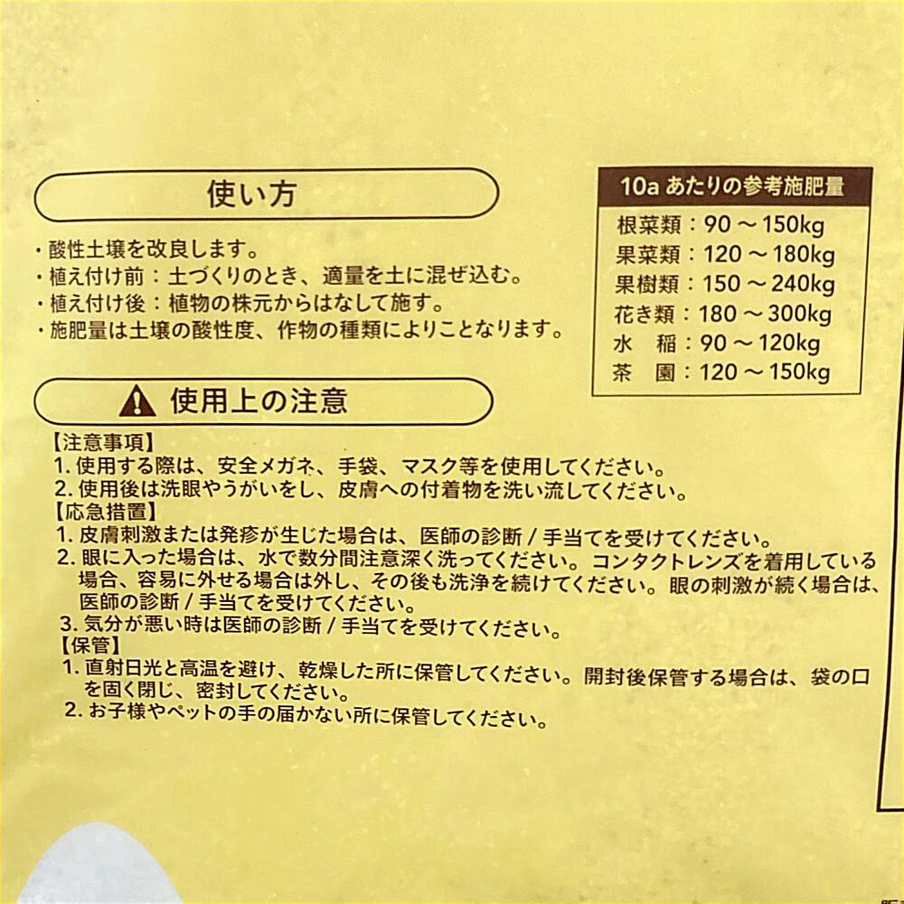 ●肥料の種類/副産石灰肥料 ●肥料の名称/50副産石灰 ●保証成分量/アルカリ分:50.0%