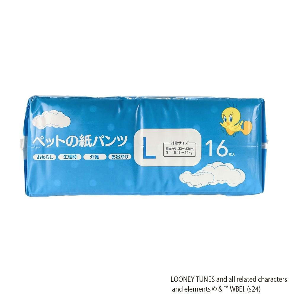 ワーナー・ブラザーズ ペットの紙パンツ L 16枚入り トゥイーティー柄 犬用 適応体重9~14kg ペット用紙おむつ テープ式 ラクラク装着