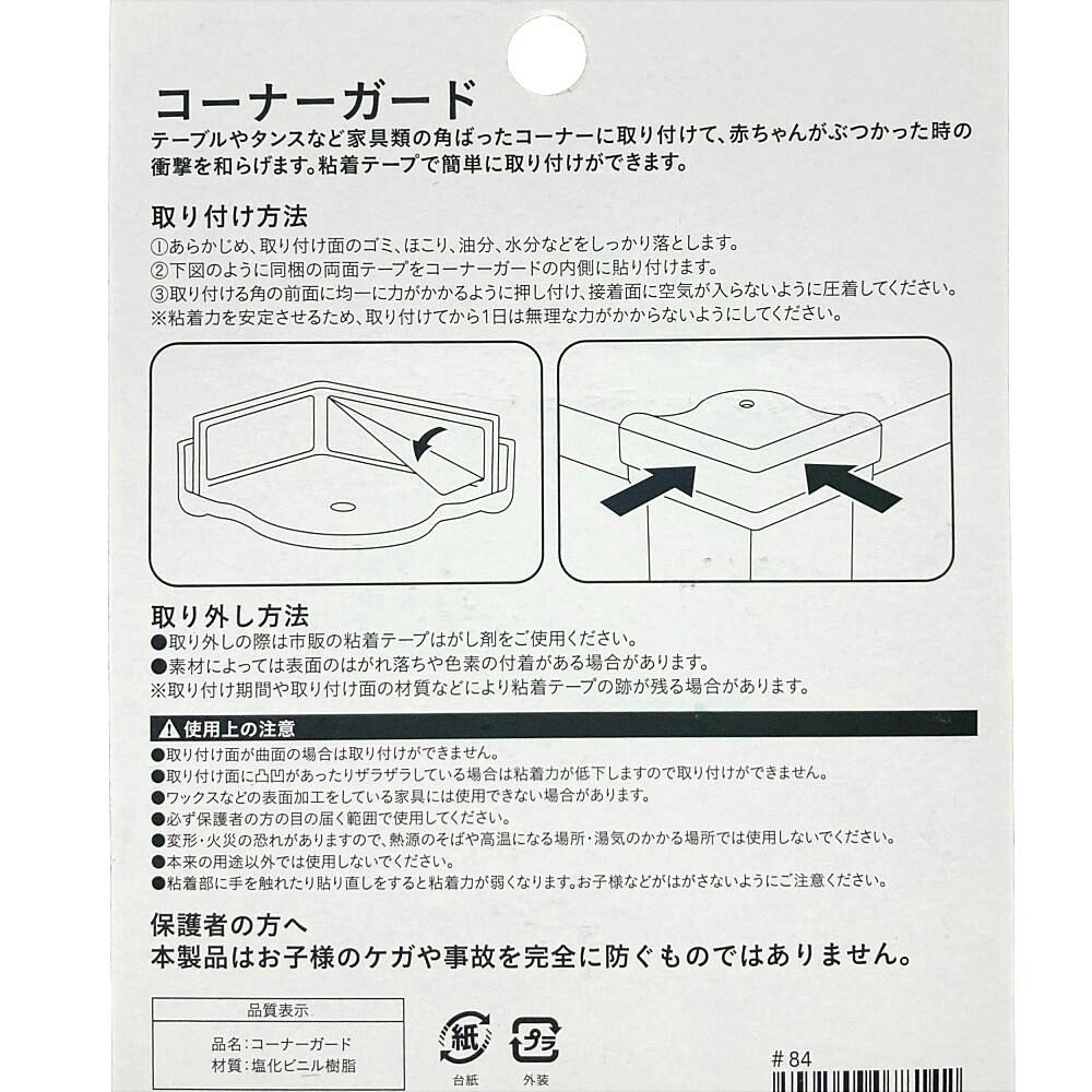 ●テーブルやタンスなど家具類の角ばったコーナーに取り付けて、赤ちゃんがぶつかった時の衝撃を和らげます。●粘着テープで簡単に取り付けができます。