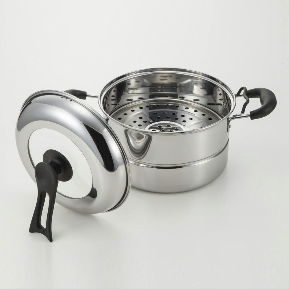 ●1台で茹でる、蒸す、煮るができる便利商品。●蓋が立てられ、鍋のハンドルにも立てられるので、蓋の場所をとりません。