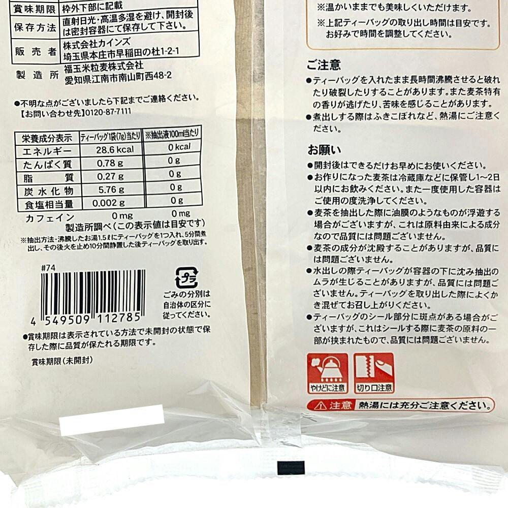 麦茶の作り方/●水出しの場合:容器に水を約1Lとティーバック1袋を入れ、冷蔵庫で約2~3時間冷やしてください。お好みの色になりましたらティーバックを取り出してください。●煮出しの場合:やかんに1~1.5Lの水を入れ、沸騰したらティーバックを1袋入れてください。など