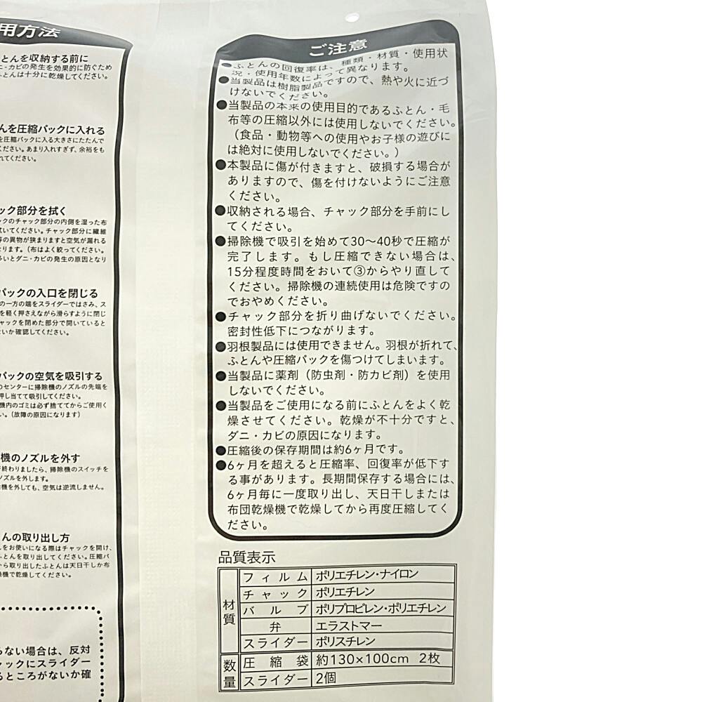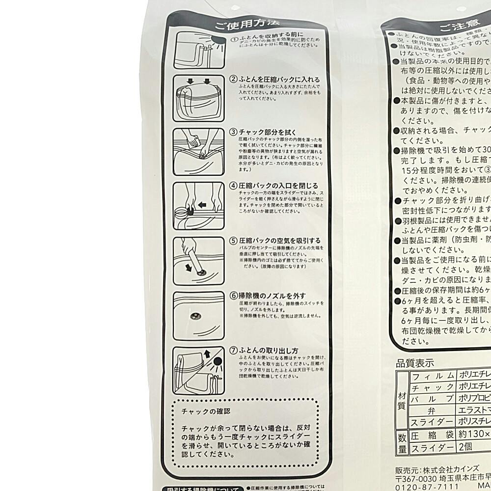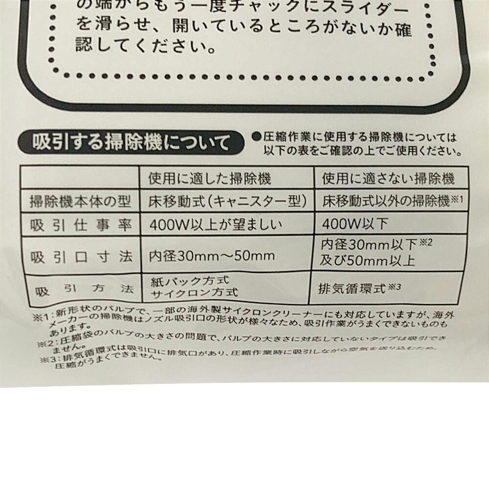 ●ノズルをバルブに当てるだけでラクラク吸引。●空気が逆流しないオートロックバルブ。●チャック部の色で密閉確認。便利なスライダー付き。●かさばるふとんを約1/3に圧縮。●圧縮作業が苦手でも大丈夫。●空気が逆流しない。●サイクロンクリーナーにも対応。