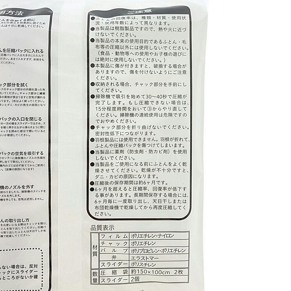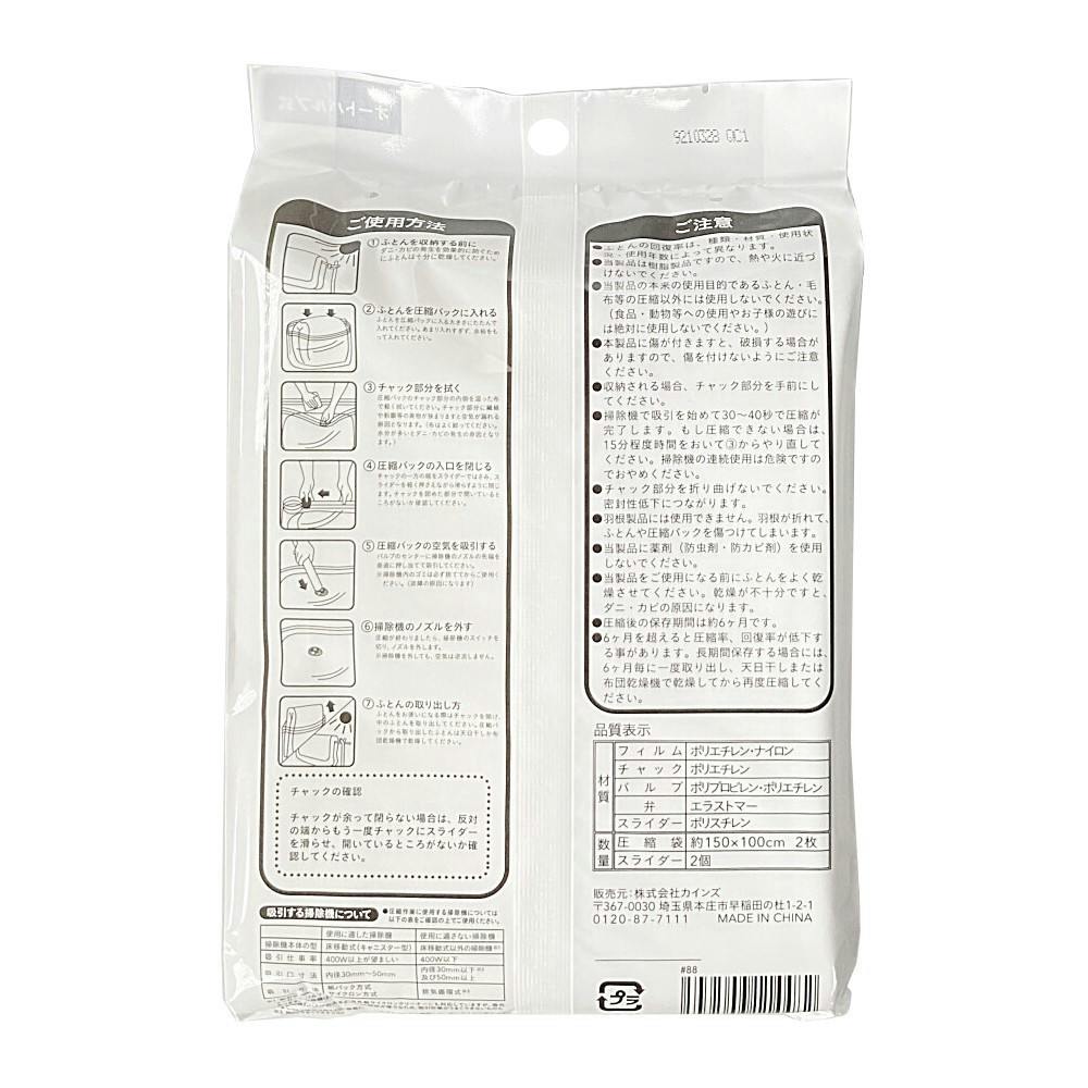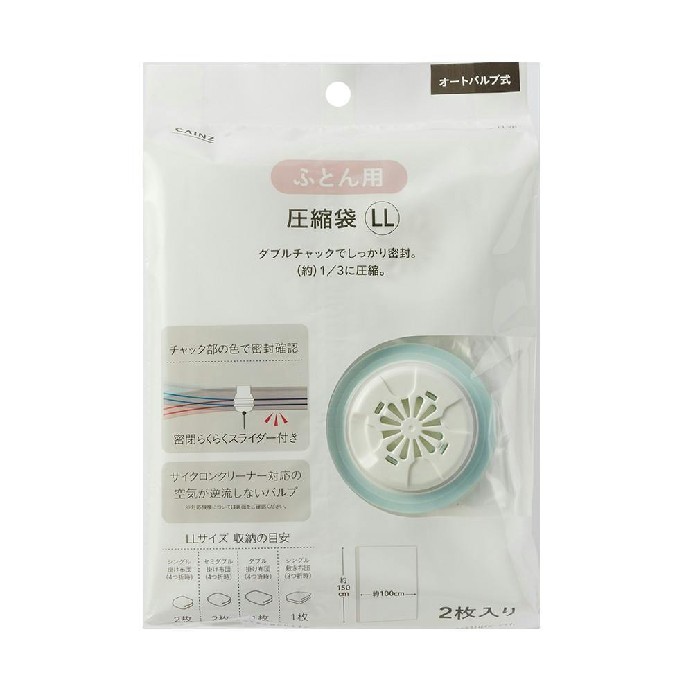 ●ノズルをバルブに当てるだけでラクラク吸引。●空気が逆流しないオートロックバルブ。●チャック部の色で密閉確認。便利なスライダー付き。●かさばるふとんを約1/3に圧縮。●圧縮作業が苦手でも大丈夫。●空気が逆流しない。●サイクロンクリーナーにも対応