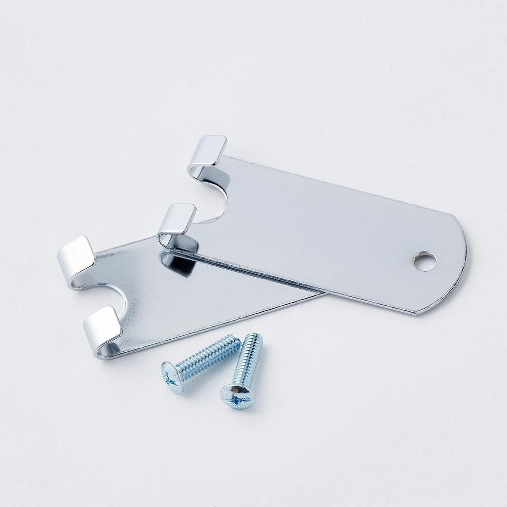●1.[B]フックを、インテリアラック90(別売)の棚中央部に引っ掛けます。●2.[A]ハンガーパイプの両端を[C]ネジで[B]フックをはさむようにプラスドライバー(別売)で取り付けます。