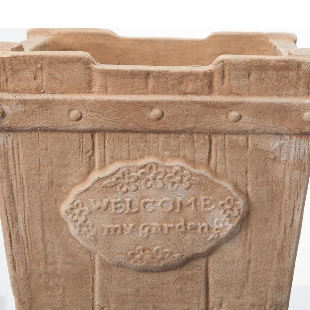 寄せ植えに最適なプランター。手造りの味わいがやわらかな雰囲気を醸し出しています。
