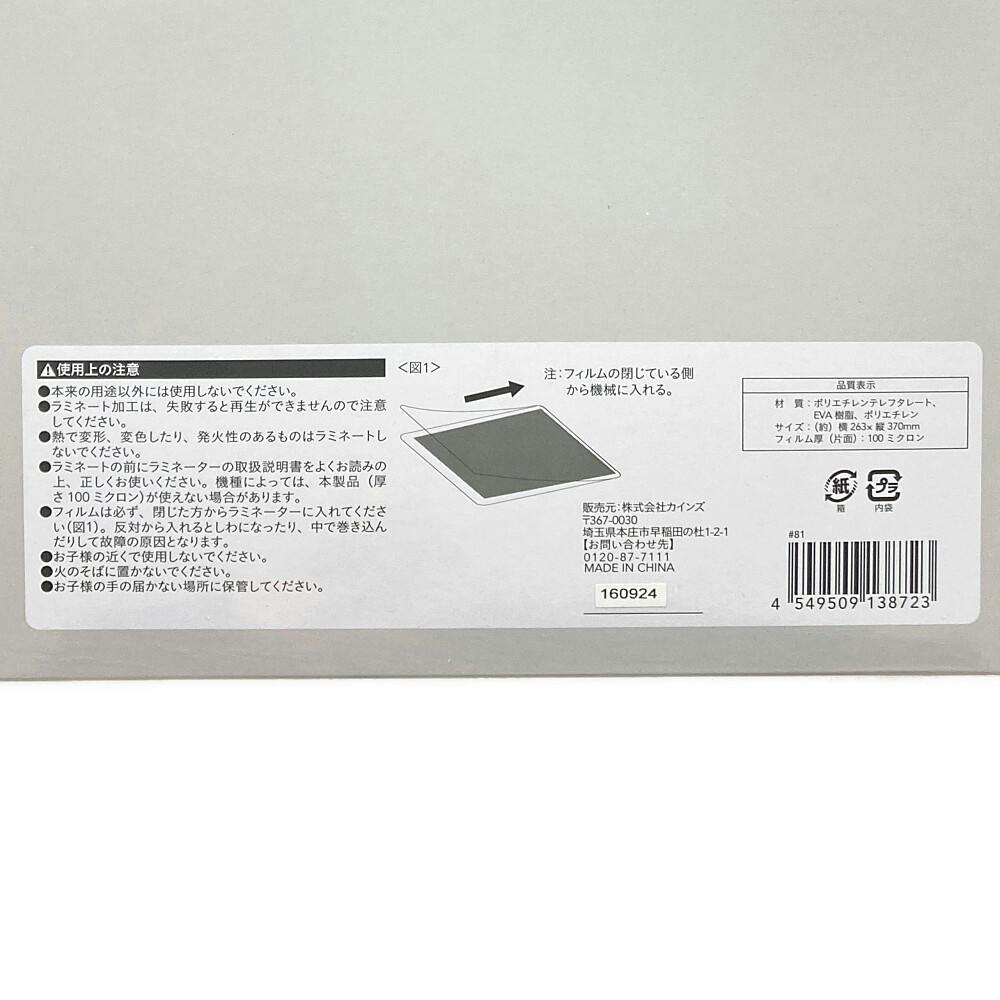 ●本来の用途以外には使用しないでください。●ラミネート加工は、失敗すると再生ができませんので注意してください。●熱で変形、変色したり、発火性のあるものはラミネートしないでください。