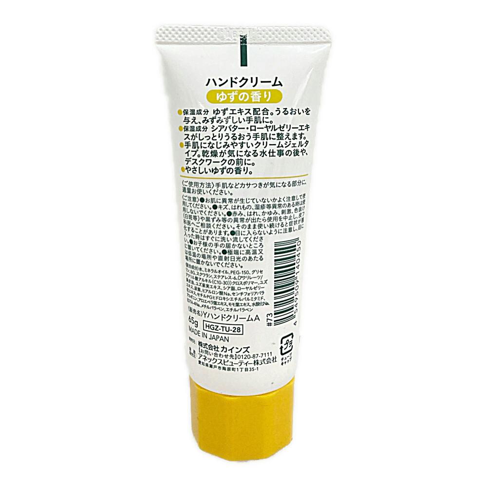 ●保湿成分/ゆずエキス配合。うるおいを与え、みずみずしい手肌に ●保湿成分/シアバター、ローヤルゼリーエキスがしっとりうるおう手肌に整えます ●手肌のなじみやすいクリームジェルタイプ。乾燥が気になる水仕事の後やデスクワークの前に
