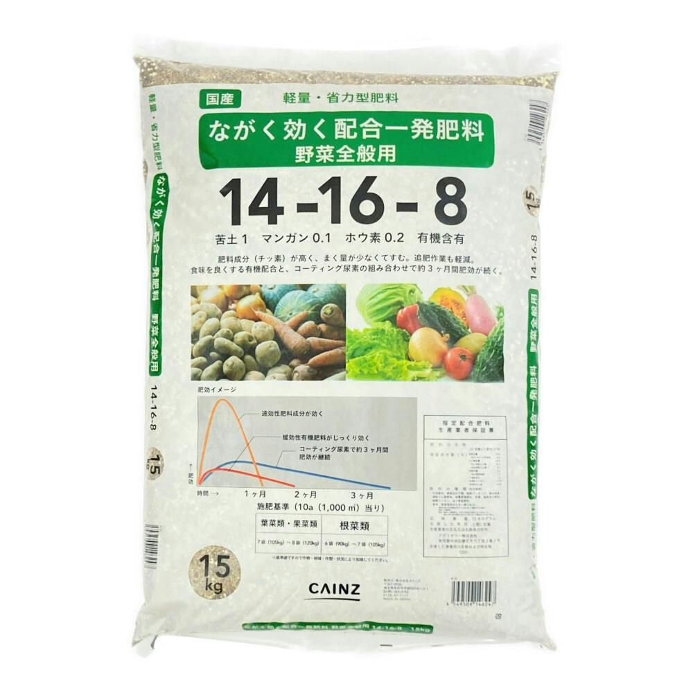 カインズ S:ながく効く配合一発肥料・野菜全般14-16-8 15kg