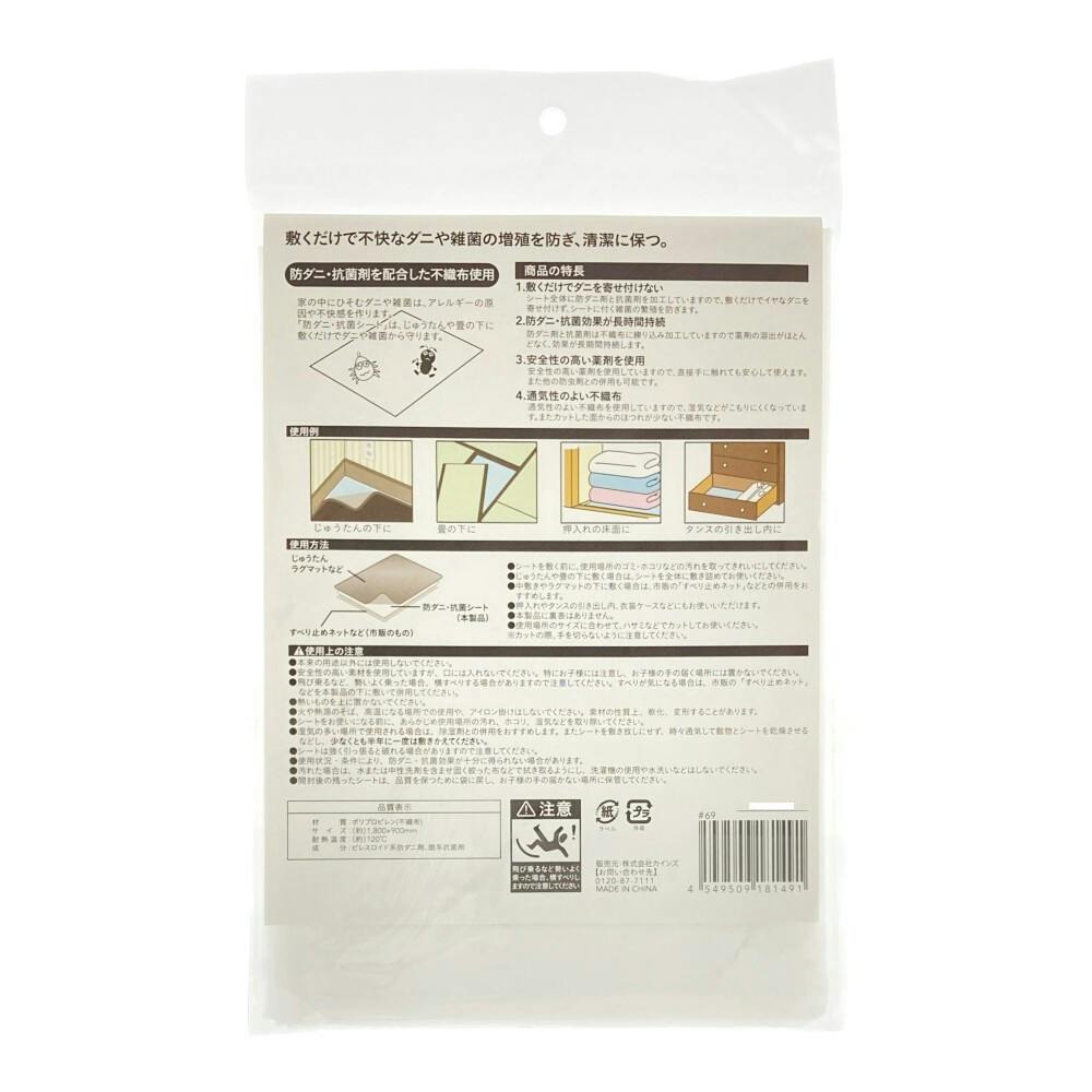 ●敷くだけでダニを寄せ付けない●防ダニ・抗菌効果が長時間持続●安全性の高い薬剤を使用●通気性のよい不織布●じゅうたん、ラグの下に●畳みの下に●防ダニ●抗菌●カットOK