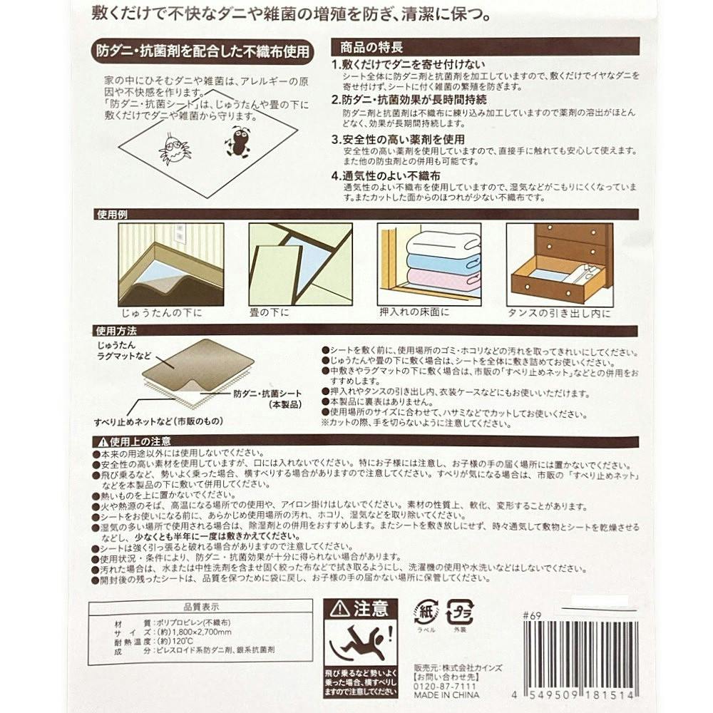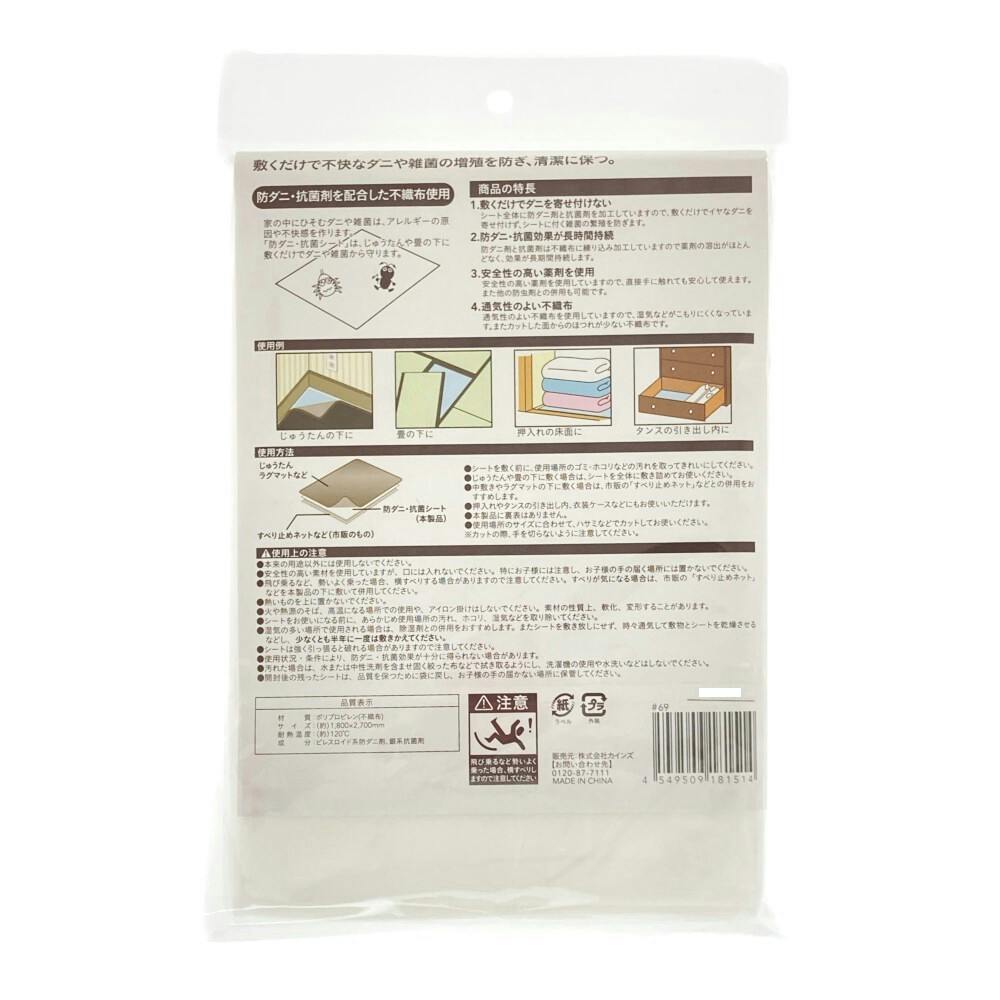●敷くだけでダニを寄せ付けない●防ダニ・抗菌効果が長時間持続●安全性の高い薬剤を使用●通気性のよい不織布●じゅうたん、ラグの下に●畳みの下に●防ダニ●抗菌●カットOK