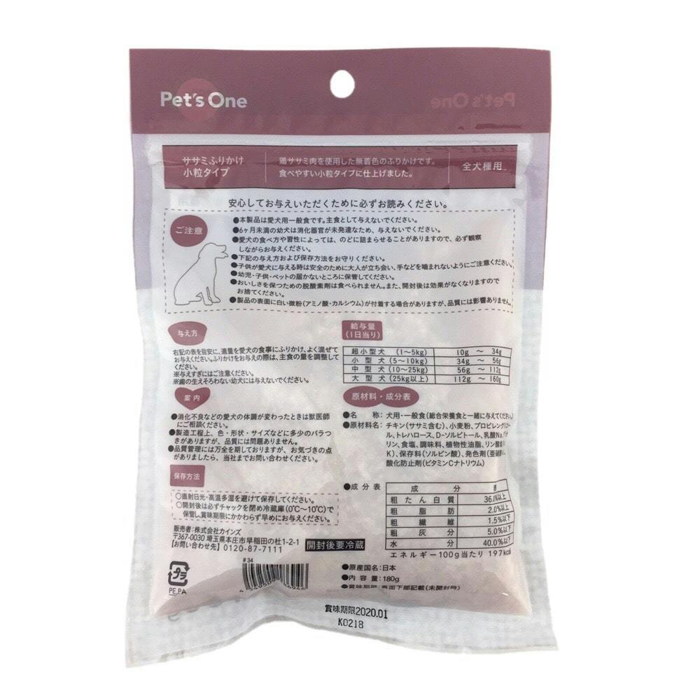 ●下表を目安に適量を愛犬の食事にふりかけ、よく混ぜてお与えください。お与えの際は、主食の量を調整してください。●超小型犬(~5kg):5g~17g●小型犬(5~10kg):17~29g●中型犬(10~20kg):29~74g●大型犬(20~35kg):74~113g