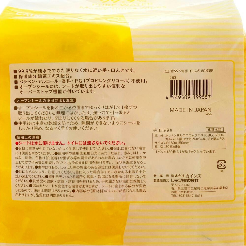 ●99.9%が純水でできた限りなく水に近い手、口ふきです ●保湿成分 緑茶エキス配合 ●パラベン、アルコール、香料、PG(プロピレングリコール)不使用 ●オープンシールには、シートが取り出しやすい便利なオーバーストップ機能が付いています